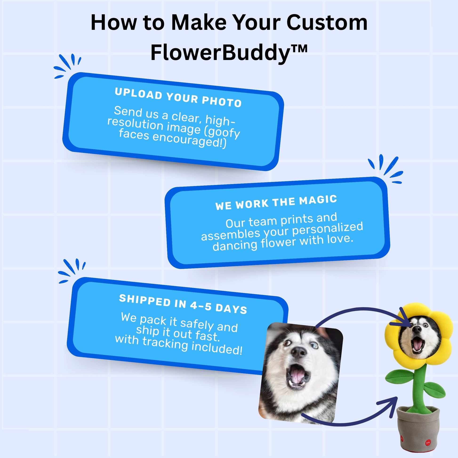 Meet FlowerBuddy™, the viral dancing sunflower that brings joy, laughter, and a personal touch.