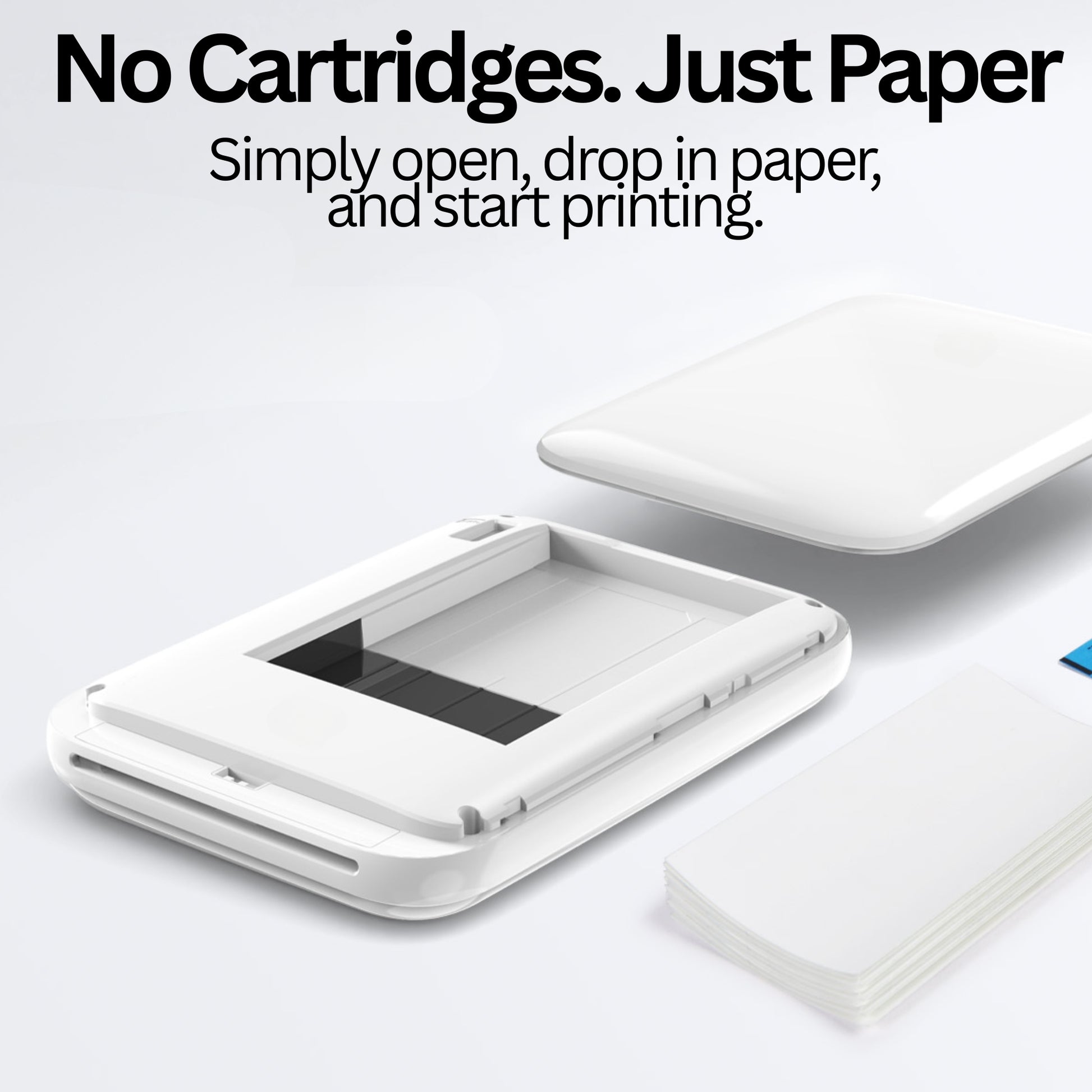 Forget ink cartridges and messy refills. This printer uses Thermal printing, activating color crystals embedded in the paper.