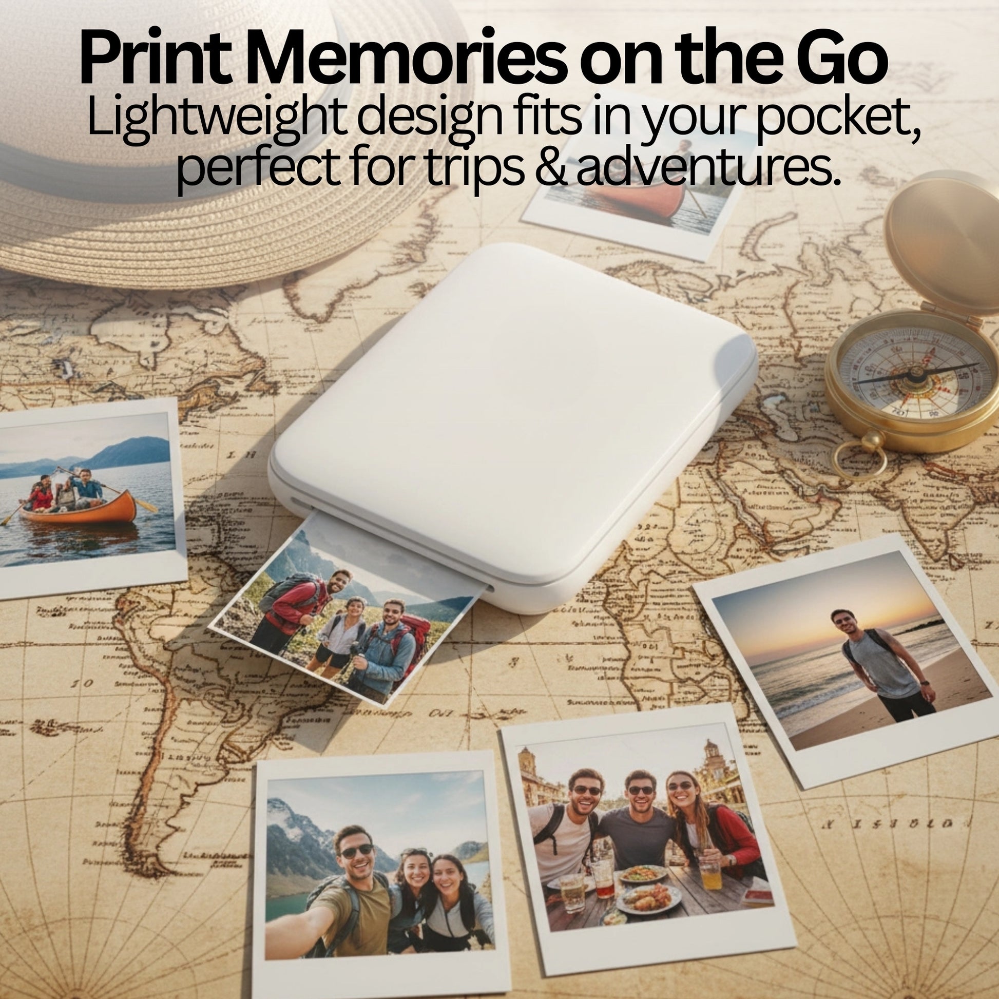 Smaller than most smartphones, it easily fits in a pocket or bag. The rechargeable battery lets you print anywhere — at parties, events, or while traveling.