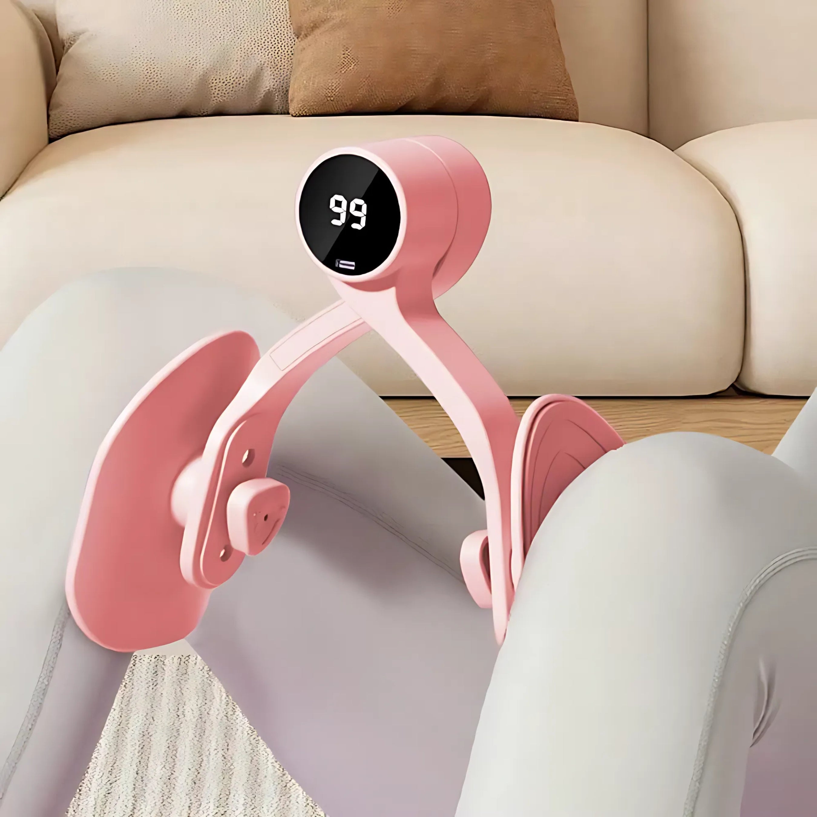 Position between thighs and apply gentle pressure. The smart counter tracks every rep.